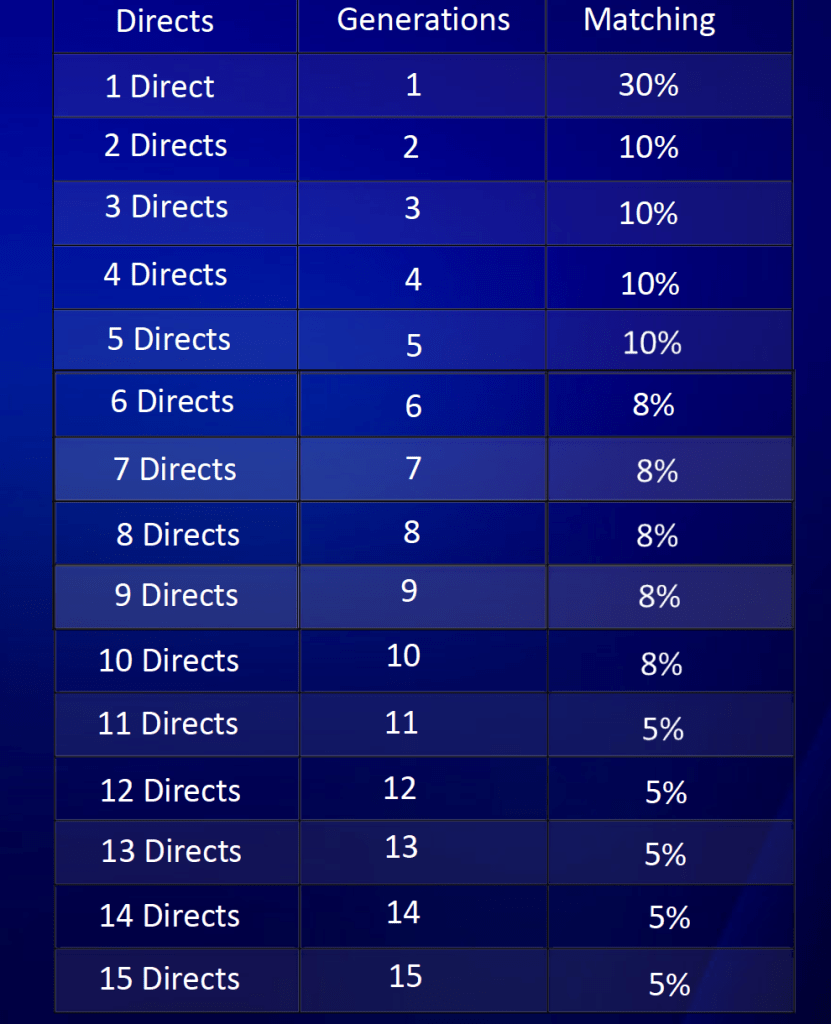 - Minden közvetlen partnernél 1 új szint aktiválódik, maximum 15 szint, lásd alább